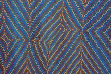 Kenny is a Yindjibarndi man who was born and grew up in Roebourne, WA. Kenny started doing art in mid-2001 as part of a tertiary education course at Cossack. He has always been interested in art but hadn’t had the opportunity until then. Kenny has a style unlike any of his fellow artist friends. He cares for colour and dots. He spends a lot of time drawing in his visual diary to sketch his initial designs. He then transfers his designs onto canvas and uses paint for background and detailing.
