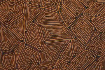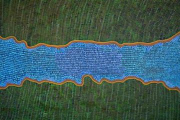 This is a painting of the Claypan Wattle when it is ripe, but it’s poisonous. This shrub starts off as a light green colour and then, as it matures, it gets darker. The flowers are a yellowy orange and also get darker with a bit of black as they are fading away.