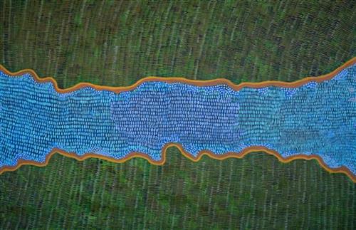 This artwork is the riverbank of Millstream. It’s a tropical oasis where we like to go swimming there, fishing and spending time with family.