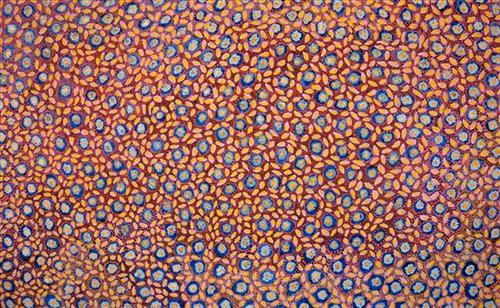 Allery started painting in February 2006, enrolling in short courses in painting and design. She loves to paint the landscape of her Country from an aerial perspective. She begins her works with an underpainting using sponge and brush work and then finishes off with a fine layer of dot work, creating a sense of movement and depth of field on the canvas. Allery also loves depicting the wildflowers of her Country. She enjoys painting the bush seeds, its creeks and rivers, wildflowers in season and trees that are specific to her Pilbara Country. Her style continues to expand and more recently she has started painting aerial landscapes with fine line work on Pilbara earth.