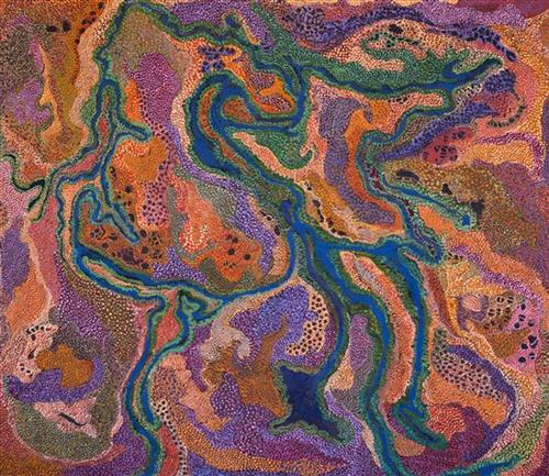 Allery regularly exhibits in galleries around the country and her works are enjoyed in private and public collections around the world. She was the Chairperson of Yinjaa-Barni Art from 2006 - 2018, is a highly respected Elder of the Yindjibarndi community and a passionate communicator of her culture. Her two daughters have followed in their mother’s footsteps and are also established artists at Yinjaa-Barni Art Centre.