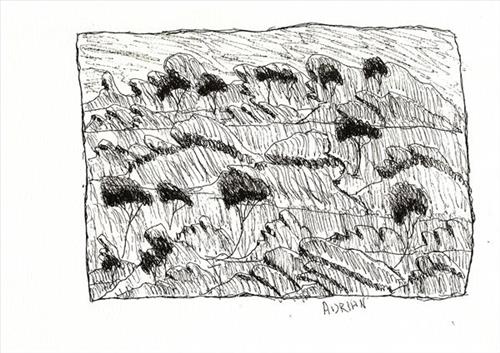 Adrian was born at Papunya in 1962. He went to school in Papunya and remembers Geoff Bardon as a school teacher and working alongside the early Western Desert painters. Adrian's fathers' country travels from west of Walungurru through Karku at Nyirrpi to Warlurkurlangu at Yuendumu. His father, Jampitjinpa, lived at Mount Doreen close to Yuendumu and later worked at Papunya as a Gardener and Builder. Jampitjinpa is a brother to the late Darby Ross Jampitjinpa, sharing the same mother and father. Adrian's mother is the late Eunice Napangardi, a well known painter herself. It is her country, Yalpirakinu, that Adrian paints.