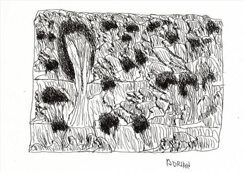 Yalpirakinu is Adrian’s mother’s country. Adrian’s mother is the late Eunice Napangardi, a well known painter herself. His artworks consistently refer to the desert mountains, ridges and trees which are part of Yalpirakinu. Using a restricted colour palette, Adrian’s brushwork is loaded with energy, drama and memories. He is a deliberate and thoughtful painter; reworking, pushing and pulling the image to completion.