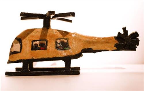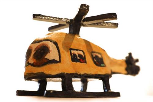 Billy’s graphic style of painting has a sense of calm and balance within. Drawing inspiration from the increasing population and traffic within the Central Desert Region, Billy started adding trucks and cars to his textured landscapes in 2008. Soon after followed aeroplanes, helicopters and even the odd flying saucer, adding to the playful nature of his work. Interacting with these subjects are the animals that have always been there- the kangaroos, the emus, the lizards, the eagles. They look on from a perch on a rock or from the shade of a tree; they flee from oncoming traffic. They function as observers and survivors of this changing place.