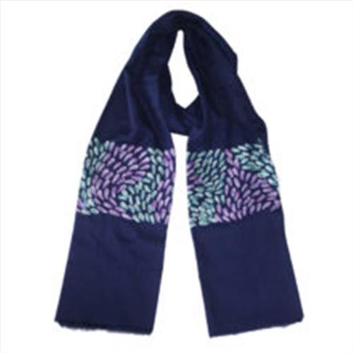 This beautiful scarf shows Daphne Marks’ Yalka – Bush Onion Tjukurrpa. The bush onion grows on the side of the road and has little purple flowers. Her works depict the different stages of the germination of the plant.