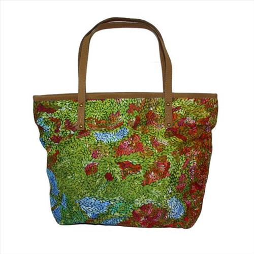 Made out of canvas with a leather trim and leather handles this bag features a digitally printed artwork by Patricia Multa.