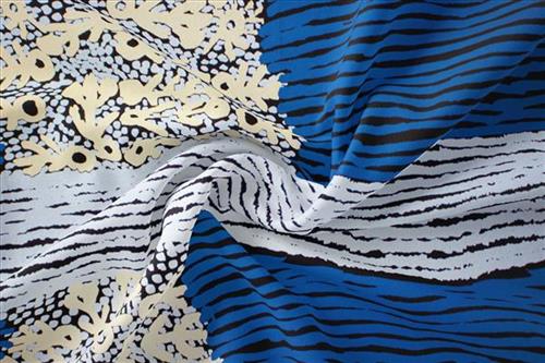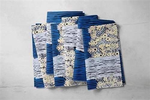 Kuruyultu (3 Colours) Fabric – Blues and White on Black (Tuscany Linen) 50cm