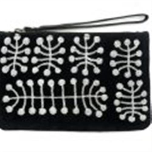 Watiya Tjuta Velvet Clutch Bag with Wrist Strap White on Black