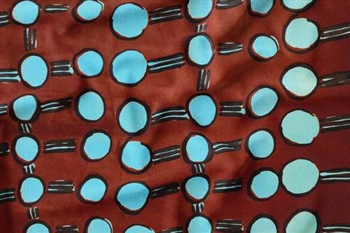 Wilkinkarra Fabric – Blue and Black on Burnt Sienna (Tencel Linen) 50cm
