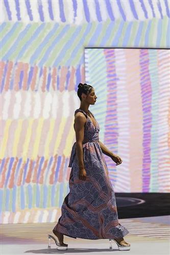 Kungkaku Puturru Fabric – Light Purple and Orange on WIne (Tencel Linen) 50cm