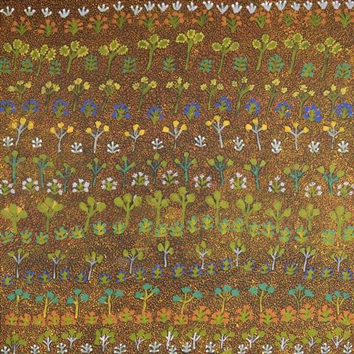 Rosie enjoys and understands the importance of painting bush medicine plants. They help in the healing of her people and it keeps the tradition and knowledge strong. These particular plants are very plentiful after rain and can be used for numerous conditions, such as skin irritations, flu, coughs and infections.