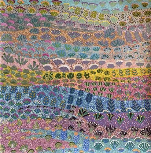 The landscape changes during the different seasons in the year. I paint the dried flowers and bushes from last season as well as the new plants that come after the rain. These plants have special meanings and uses for us. I have been taught how to read the country, and now I teach my children these skills.
