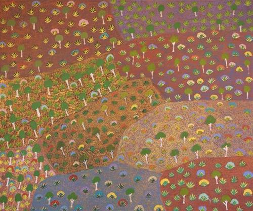 The community of Ampilatwatja made a conscious decision not to paint altyerr (dreaming stories). The artists paint their country where those stories sit.