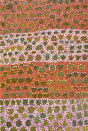 Daisy has painted her Mother’s country, Kngwarraye country. Kngwarraye is one of the four main skin names of Ampilatwatja.