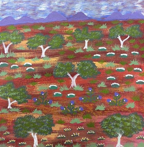 Daisy Kemarre Moss – My Mother’s Country Daisy has painted her Mother’s country, Kngwarraye country. Kngwarraye is one of the four main skin names of Ampilatwatja. Bush medicine, goanna and many other traditional bush foods Read more…