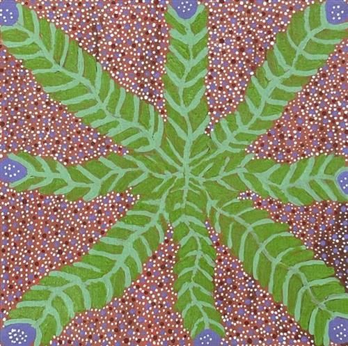 Lulu Teece Apetyarr was born at Aketh-aketh. She has one brother, Pompy and three sisters, all well known artists. "My father's country is Ampilatwatja and my mother comes from Antarrengeny. I paint because I enjoy painting and to make money. The thing I like to paint most is bush medicine seeds, (Inteng-Inteng) and landscapes. In my spare time I like to go hunting for sugar bag and digging for Yerramp (honey ant.) My plan for the future is to keep looking after my grand kids".