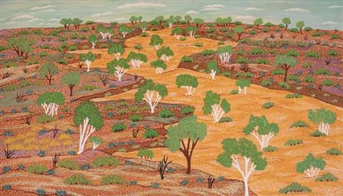 The community of Ampilatwatja made a conscious decision not to paint altyerr (dreaming stories). The artists paint their country where those stories sit.