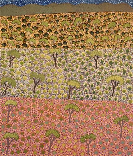 This is my country, it’s the country around Irrultja. This is where we like to go after big rain. After big rain there, we can go swimming. There is always good hunting on my country. It is good for me to paint my country and it makes me feel good.