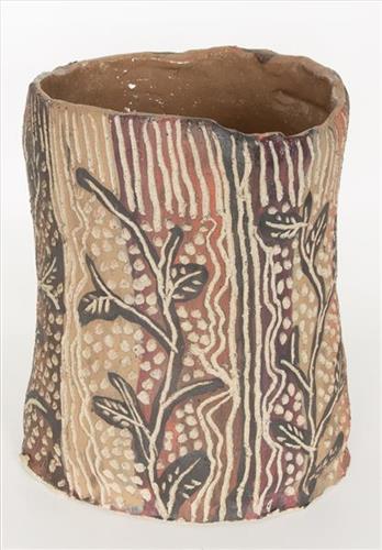 From the very start of Elizabeth’s artistic practice she has drawn her kampurarpa tjukurpa (bush tomato story) in clay. In the old times kampurarpa were one of the main foods for Anangu.