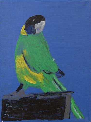 Jeffrey paints his favourite birds that live in the country around Ernabella. These include the kuparu (magpie), partilpa (Port Lincoln ringed neck parrot), kayarkiyarpa (galah), tjintir-tjintirpa (willy wag-tail), piil-piilpa (yellow throated minor) and kuurkuurpa (owls).