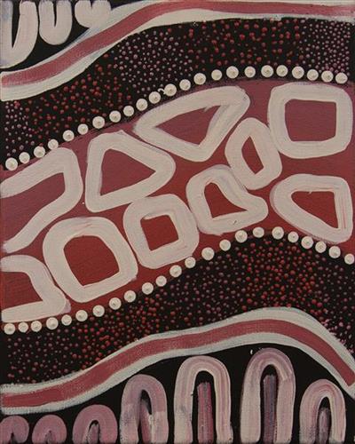 Artists use this title when they are depicting their Country. It might be a representation of a particular place or of different aspects of that area. The artist uses a combination of colour and design to indicate variations in the landscape. Inspiration is drawn from all elements of Country and might include bush tucker, water holes, meeting places, rock formation, birds or animals.