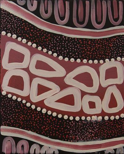 Artists use this title when they are depicting their Country. It might be a representation of a particular place or of different aspects of that area. The artist uses a combination of colour and design to indicate variations in the landscape. Inspiration is drawn from all elements of Country and might include bush tucker, water holes, meeting places, rock formation, birds or animals.