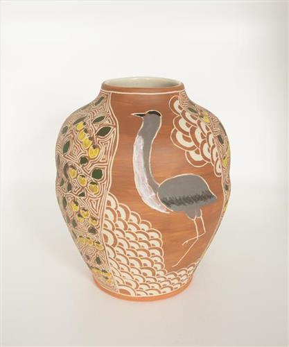Since the first wati (men) only ceramics workshop at Ernabella in 2011, Ngunytjima has been applying walka (design) and tjukurpa (sacred stories of law, country and culture) to his own forms. His work alternates between landscape depictions of the bush and local animals, and what is considered more traditional markings on his thrown forms. 'During the week I make pottery and at nights and on the weekend I go hunting. I learnt from my grandfather, hunting, when I was a young fella, before I was a wati. Then when I was a wati, I learnt pottery from Geoff Crispin’.