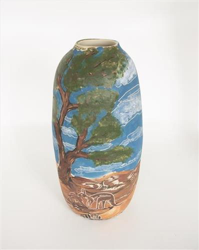 Derek is also an avid hunter. The translation of his drawings of the Pukatja landscape and animal life onto ceramics is quite unique and received immediate interest from collectors and curators.