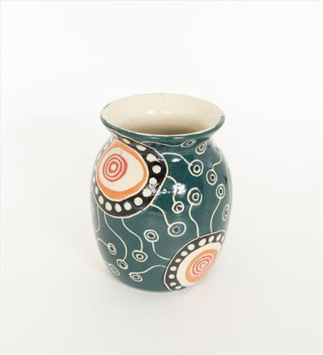 Tjala or honey ants live in nests about a metre underground beneath mulga trees, and they are a highly favoured food source. The tjala tunnels that lead down to the ants’ nests are called nyinantu, and the larvae are called ipilyka-ipilyka. After the rain when the ground is soft the women go digging for tjala by looking for the drill holes under the trees. They then use shovels and crowbars to dig down following the tunnels to find the tjala inside. Aṉangu suck the delicious rich honey-like liquid from the distended abdomen of the tjala. The story of the tjala is told across the Northern Territory into South Australia and is an important link between Aṉangu mythology and inter-dependence on the environment.