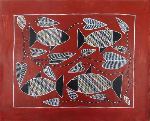 All artworks are made by local artists living in the community. Artwork reflects the traditional songs and stories that have been passed down through the generations with a contemporary edge. Fibre art is a special feature of Djilpin Arts as is its Gapu Series of fine art prints.