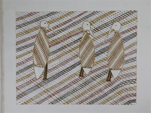 All artworks are made by local artists living in the community. Artwork reflects the traditional songs and stories that have been passed down through the generations with a contemporary edge.  Fibre art is a special feature of Djilpin Arts as is its Gapu Series of fine art prints.