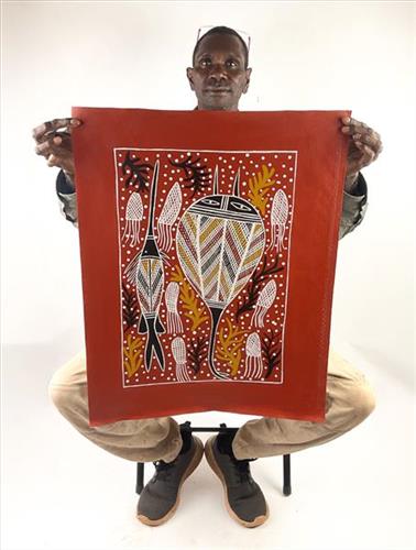 The 2025 Gapu series is the 12th workshop series in Djilpin’s long collaboration with Basil Hall Editions. Djilpin Artists worked, for the first time, with Printmaker Antonia Aitken. Collograph plates were developed by 15 artists over a week in April at Djilpin Arts Centre in Wugularr (Beswick). For Series XII, artists have depicted traditional string and dilly bags, bathi, exploring the place of these artefacts in culture, ceremony and mythology.