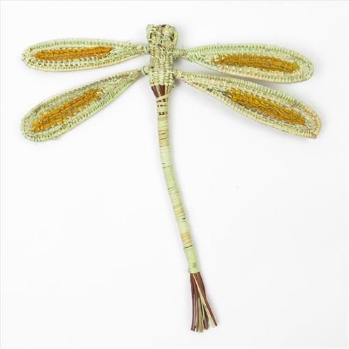 Signalling in the dry season, dragonflies are ubiquitous with dry winds, cool nights and saying goodbye to the wet season! Our senior fibre artists are continuing to expand their techniques and range with dragonflies and other complex woven forms. Each are unique, hand woven and coloured using natural bush dyes.