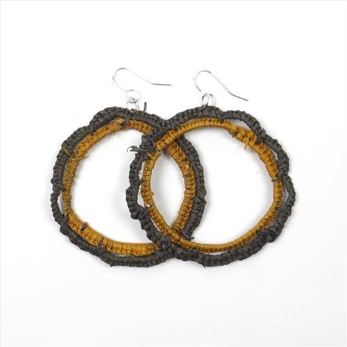 Fibre Art is an ancient Aboriginal women’s craft that is still made today using the same techniques as their ancestors. Making fibre art is labour intensive and much care and fine needlework is required to ensure the finished object is both functional and beautiful. Fibre art from Ghunmarn Culture Centre includes dilly bags, floor mats, bush fans, woven creatures found in the landscape, plants such as yams (bush potato), baskets, place mats, and spirit figures such as mermaids and Mukuys. Natural pandanus fibre (Mukarra), is used to make much of the fibre art produced by the artists of Djilpin Arts. Women collect the pandanus by pulling from the top of the pandanus tree, then stripping and drying the leaves before they are dyed with natural bush colour collected from the Beswick surrounds.