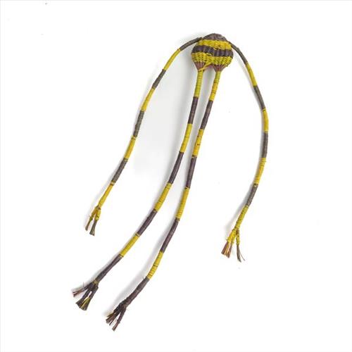 These finely crafted woven figures represent Mukuy Spirit creatures. The Mukuy belong in Yirritja country called Galanbirni. At night you might hear them playing the Didjeridu. The Mukuy travel around a lot and are often found in sacred places. They are mysterious, sometimes playful and sometimes cheeky characters, often referred to as Devil Devil. Mukuy figures tell the stories of country, culture and spiritual beliefs.