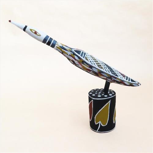 Wood carving has always been part of Aboriginal culture and Djilpin artists continue this tradition. Men carved wood for many purposes – tools for hunting or gathering food, axes and knives for building shelters, spears and clubs for protection of their lives and territory, objects for ceremony and to mark sacred sites.