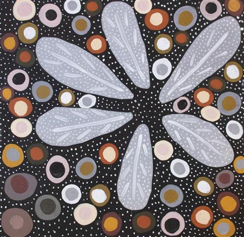 "I was born in Kununurra. I now have five children. I watch the old people painting - that's how I got started. It teaches me about Country. I am ready to take over the stories of my mother.  I learnt from her to tell her stories and pass them on to my children and grandchildren."