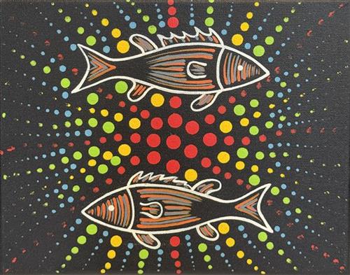 Brett Wilson, a Yorta Yorta man from Echuca, started painting around the age of 8 (self-taught). A few years down the track his passion led him to Bendigo Regional Institute of TAFE, Echuca Campus where he studied Certificate I, II and III in Aboriginal and Torres Strait Islander Cultural Arts. The course gave Brett the opportunity to try different mediums.