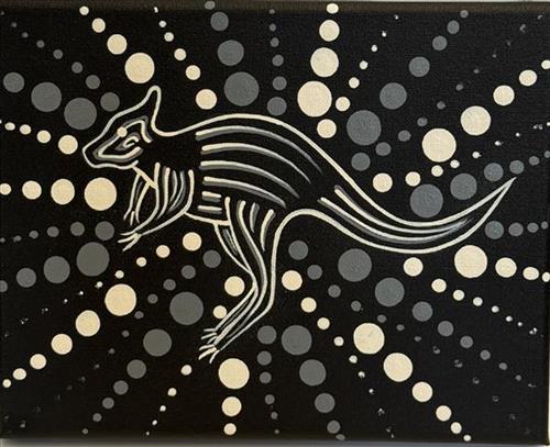 Brett Wilson, a Yorta Yorta man from Echuca, started painting around the age of 8 (self-taught). A few years down the track his passion led him to Bendigo Regional Institute of TAFE, Echuca Campus where he studied Certificate I, II and III in Aboriginal and Torres Strait Islander Cultural Arts. The course gave Brett the opportunity to try different mediums.