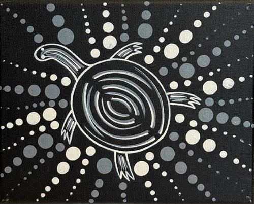 Brett Wilson, a Yorta Yorta man from Echuca, started painting around the age of 8 (self-taught). A few years down the track his passion led him to Bendigo Regional Institute of TAFE, Echuca Campus where he studied Certificate I, II and III in Aboriginal and Torres Strait Islander Cultural Arts. The course gave Brett the opportunity to try different mediums.