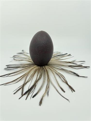 These hand painted Emu eggs sit cradled in a bed of Emu feathers, symbolising the deep and unbreakable connection between land, life and spirit. The intricate patterns painted onto the Emu eggs reflects the winding paths of country, rivers, songlines and the stories carried through generations. These pieces are a tribute to the strength of our Ancestors, the beauty of our lands and the stories that live on through us.