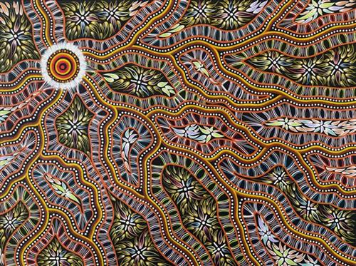 Brett Wilson, a Yorta Yorta man from Echuca, started painting around the age of 8 (self-taught). A few years down the track his passion led him to Bendigo Regional Institute of TAFE, Echuca Campus where he studied Certificate I, II and III in Aboriginal and Torres Strait Islander Cultural Arts. The course gave Brett the opportunity to try different mediums.