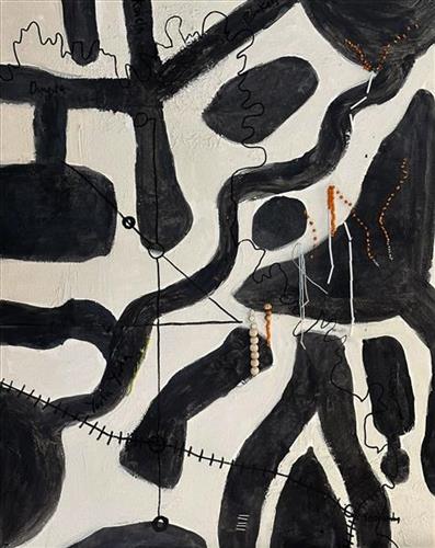 This work, ‘That’s not yours’ reflects on the impacts of resource extraction on Country, memory, and culture. In this work, I combine acrylic with natural mediums, including River clay collected across Yorta Yorta Country, to anchor the painting in the land itself. Hand-stitched glass beads traverse the surface, representing the environmental and cultural damage caused by mining, particularly sand mining, which continues to disrupt the ecosystems, waterways, and cultural sites of my Country. Over this layered surface, I have inscribed an early map, drawn from nineteenth-century texts documenting the villages and land allotments of the Rodney Shire near Tatura and Toolamba, places tied to my family and ancestral connections. By layering historical cartography with natural and symbolic materials, the work situates the contemporary consequences of extractive practices within a broader narrative of colonisation and dispossession. This work is an attempt to confront the histories of settler extraction and the ongoing impacts of mining on our lands. Through materials, mapping, and storytelling, I aim to make visible what has been taken and assert the resilience and sovereignty of my people and our Country. ‘That’s not yours’ positions memory, history, and environment in dialogue, articulating the entangled consequences of colonisation and industrial exploitation on Country.