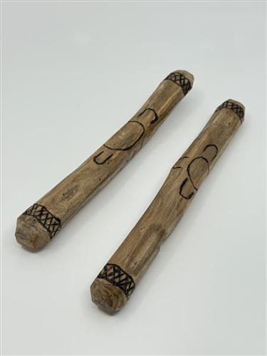 These clapsticks have been hand carved out of river red gum collected on Yorta Yorta Country. Traditionally clapsticks have been used as part of our ceremonies and corroborees.