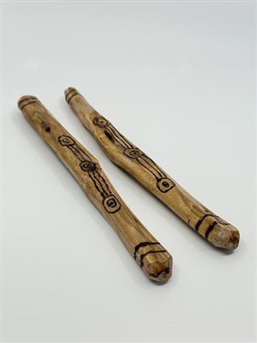 These clapsticks have been hand carved out of river red gum collected on Yorta Yorta Country. Traditionally clapsticks have been used as part of our ceremonies and corroborees.
