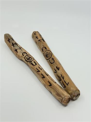 These clapsticks have been hand carved out of river red gum collected on Yorta Yorta Country. Traditionally clapsticks have been used as part of our ceremonies and corroborees.