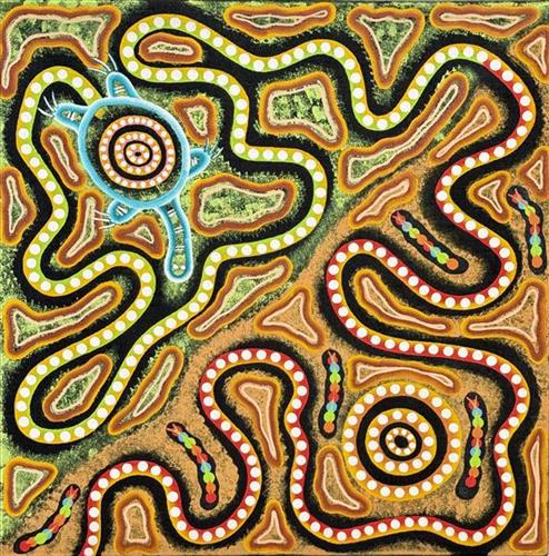 My journey from Yorta Yorta Country to Alice springs. My totem the long neck turtle of the Yorta Yorta and the Catapila being the totem of the (Yeperenye/Yipirinya) people of Alice springs.