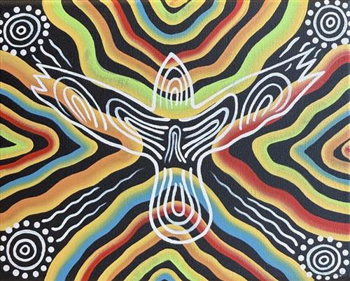 Brett Wilson, a Yorta Yorta man from Echuca, started painting around the age of 8 (self-taught). A few years down the track his passion led him to Bendigo Regional Institute of TAFE, Echuca Campus where he studied Certificate I, II and III in Aboriginal and Torres Strait Islander Cultural Arts. The course gave Brett the opportunity to try different mediums.