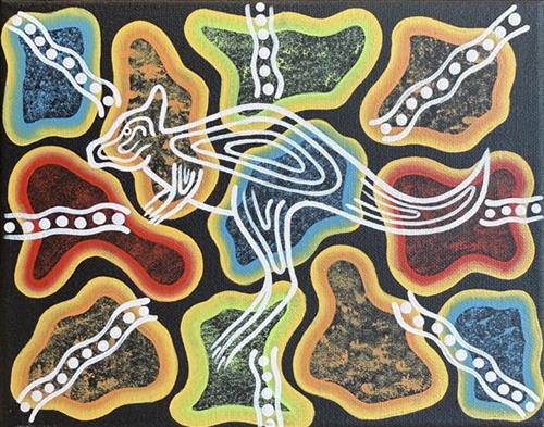 Brett Wilson, a Yorta Yorta man from Echuca, started painting around the age of 8 (self-taught). A few years down the track his passion led him to Bendigo Regional Institute of TAFE, Echuca Campus where he studied Certificate I, II and III in Aboriginal and Torres Strait Islander Cultural Arts. The course gave Brett the opportunity to try different mediums.
