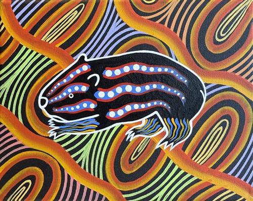 Brett Wilson, a Yorta Yorta man from Echuca, started painting around the age of 8 (self-taught). A few years down the track his passion led him to Bendigo Regional Institute of TAFE, Echuca Campus where he studied Certificate I, II and III in Aboriginal and Torres Strait Islander Cultural Arts. The course gave Brett the opportunity to try different mediums.